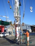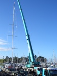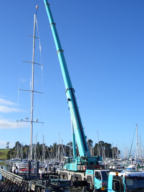 The lifting can be done with Gulf Harbour's boatstacker  fork hoist (up to forty footers), travelift mounted 2 ton capacity hiab crane, or for the largest masts, we can organise any size crane required.